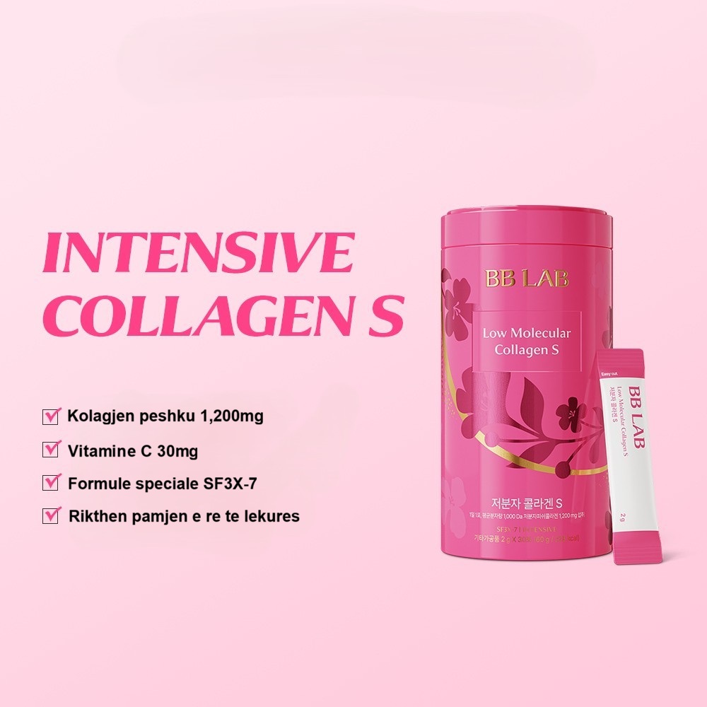 BB LAB Intensive Low Molecular Collagen S është një suplement korean premium “inner beauty” që ndihmon në përmirësimin e elasticitetit dhe hidratimit të lëkurës, duke reduktuar shenjat e plakjes dhe duke rikthyer një pamje më të re.